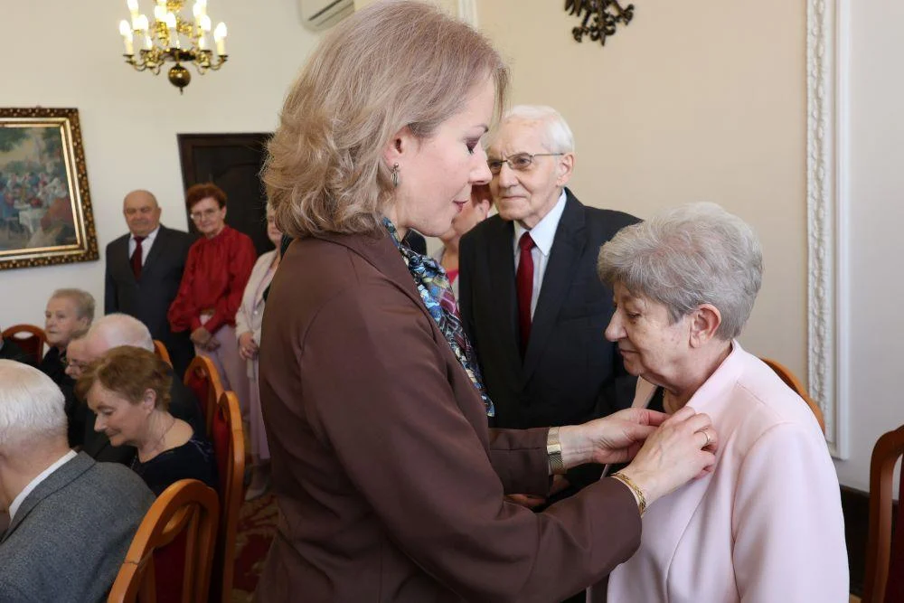Prezydent mówiła również, że jubilaci swoim przykładem pokazują, jak budować małżeństwo na solidnych fundamentach. Życzyła im przede wszystkim zdrowia, wielu kolejnych wspólnych lat oraz radości z dzieci, wnuków i prawnuków.
