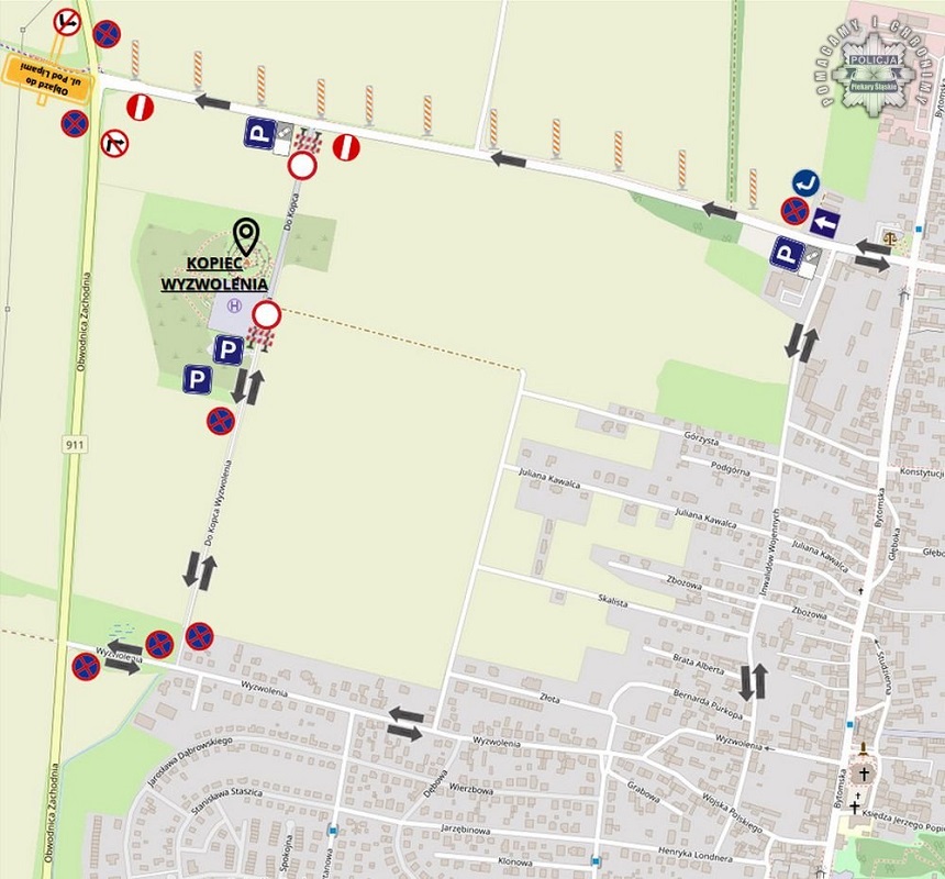 W dniu 12 sierpnia w godzinach od 18:00 do 6:00 13 sierpnia na odcinku ul. Jana Pawła II, od skrzyżowania z ul. Inwalidów Wojennych do Drogi Wojewódzkiej nr 911, zostanie wprowadzony ruch jednokierunkowy w kierunku od ul. Bytomskiej do DW 911. Dojazd do ul. Bytomskiej od strony DW 911 będzie możliwy przez objazd ulicą Pod Lipami.