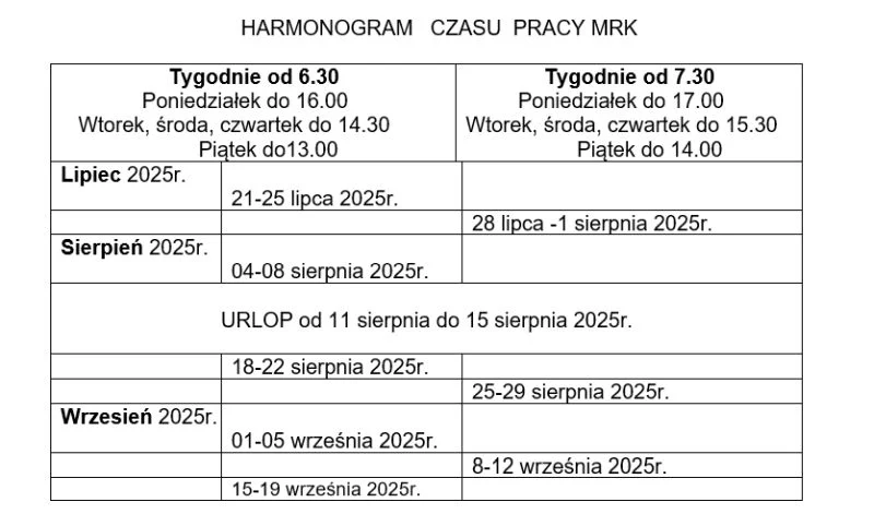 Miejski Rzecznik Konsumentów w Piekarach Śląskich informuje, że w dniach od 21 lipca do 25 lipca będzie pracował w zmienionych godzinach. Godziny pracy będą naprzemienne, co tydzień w różnych godzinach, zgodnie z poniższym harmonogramem: