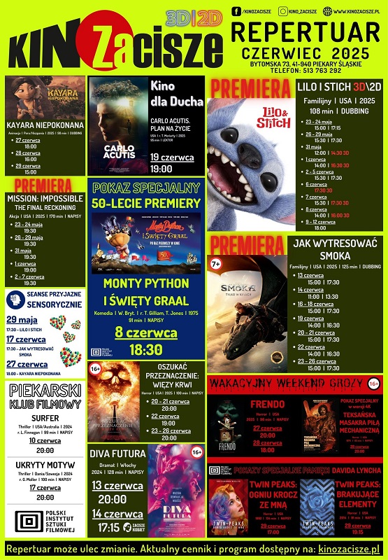 Czerwiec w kinie Zacisze w Piekarach Śląskich zapowiada się wyjątkowo! W programie znajdą się zarówno hity familijne, jak i klasyki kina, a także mroczne thrillery i specjalne pokazy. Przygotujcie się na wspaniałe filmowe emocje!