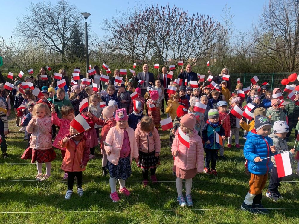 Natomiast, Tomasz Wesołowski – Przewodniczący Rady Miasta, Natalia Ciupińska – Szoska – I Wiceprzewodnicząca Rady Miasta wraz z radnymi Bożeną Boczek oraz Marcinem Federhoffem spotkali się w Miejskiej Szkole Podstawowej nr 2 i z jej uczniami ułożyli kolejną flagę. Najmłodsi patrioci z Miejskiego Przedszkola nr 8 wraz Dyrektorką Szkoły Joanną Horzelą oraz radnymi Danielem Pliszką, Andrzejem Wymysło i Stanisławem Plajznerem stworzyli flagę na podwórku przed budynkiem przedszkola.