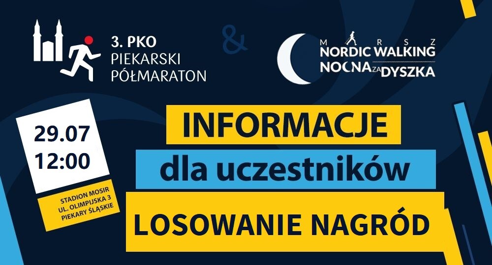 Miasto Piekary Śląskie wraz z Miejskim Ośrodkiem Sportu i Rekreacji w Piekarach Śląskich informują, że losowanie nagród w ramach 3. PKO Piekarskiego Półmaratonu odbędzie się w piątek – 29 lipca o godzinie 12.00 na terenie MOSiR przy ul. Olimijskiej 3.