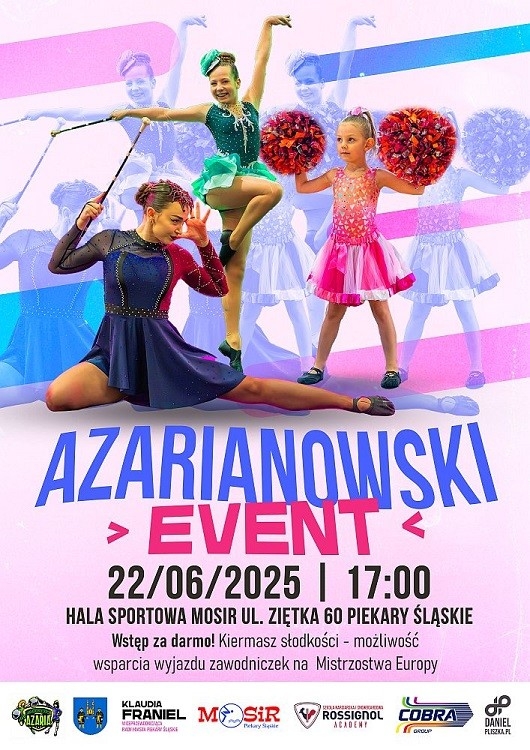 Azarianowski Event to wydarzenie, które z roku na rok przyciąga coraz liczniejszą publiczność i sympatyków Klubu Azaria. Tancerki klubowe od lat odnoszą sukcesy na turniejach w Polsce i za granicą, wracając z medalami, pucharami i wyróżnieniami. Dzięki ich ciężkiej pracy i pasji, Piekary Śląskie są dumnie reprezentowane na prestiżowych wydarzeniach tanecznych i sportowych.