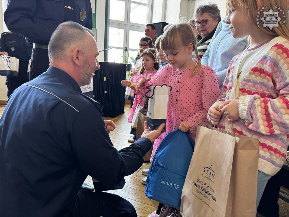 W ramach akcji policjanci spotykali się z pierwszoklasistami w szkołach na terenie miasta. Podczas zajęć opowiadali o zasadach bezpiecznego poruszania się po drogach i wręczali dzieciom elementy odblaskowe.