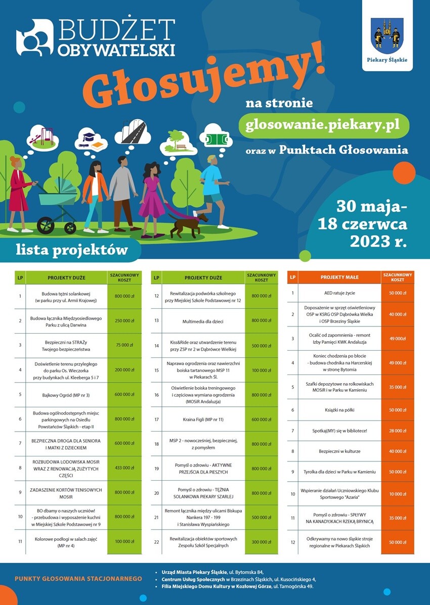 Do wyboru są 22 duże projekty i 12 małych projektów. To od Was zależy ostateczna decyzja.