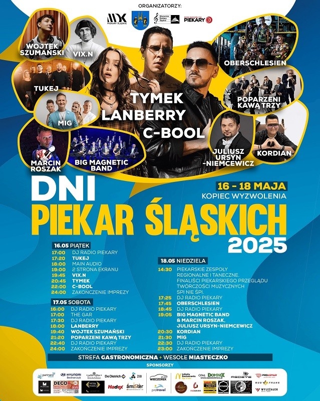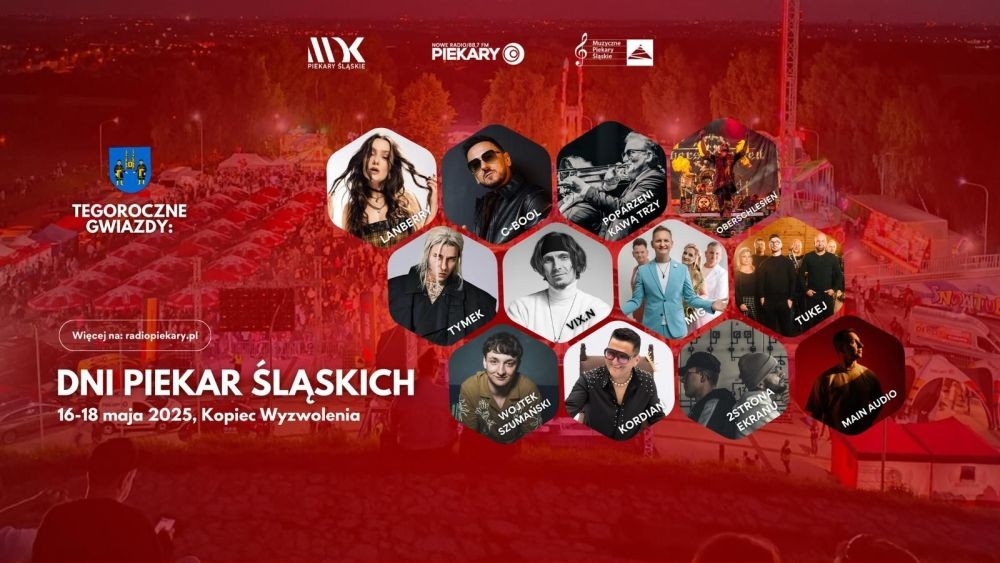 Miasto Piekary Śląskie z wielką przyjemnością zaprasza mieszkańców i turystów na tegoroczną edycję Dni Piekar Śląskich, które odbędą się w dniach 16-18 maja. To wyjątkowe wydarzenie zapowiada się jako prawdziwa uczta muzyczna i rozrywkowa, pełna koncertów, atrakcji dla dzieci oraz zabaw w Luna-Parku. Trzydniowy festiwal z pewnością dostarczy niezapomnianych wrażeń.