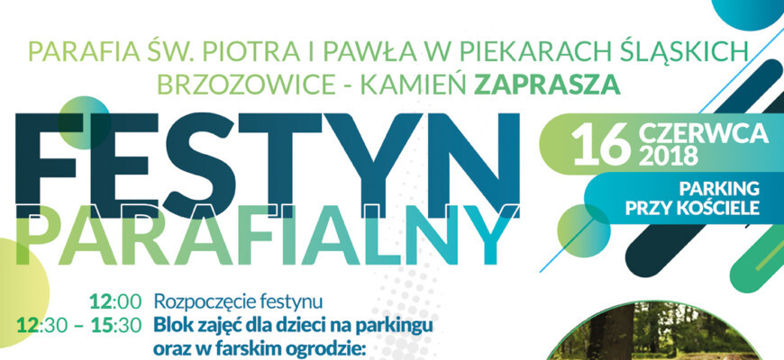 Parafia Św. Piotra i Pawła w Piekarach Śląskich (Brzozowice-Kamień) zaprasza wszystkich mieszkańców na festyn parafialny, który odbędzie się już w sobotę, 16 czerwca, na parkingu przy parafialnym kościele. W programie przewidziano mnóstwo atrakcji. Pełen program imprezy zamieszczamy poniżej: