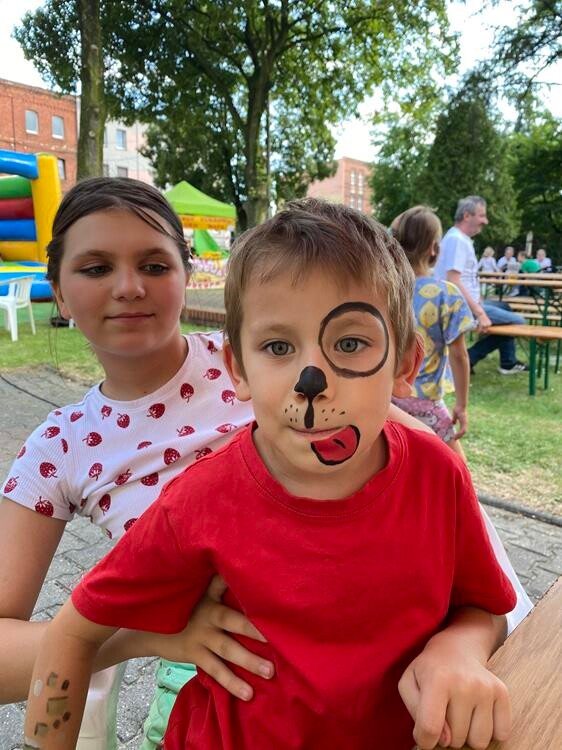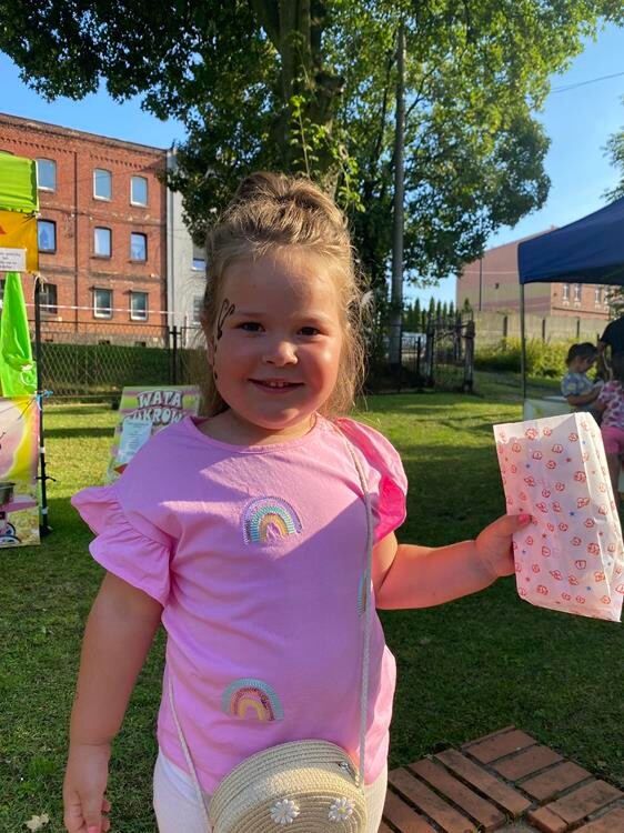 Dzieci mogły korzystać z rozmaitych atrakcji, takich jak malowanie twarzy, brokatowe tatuaże, popcorn, wata cukrowa czy zakręcone frytki – wszystko to wywołało mnóstwo uśmiechów i entuzjazmu. Wspaniała atmosfera festynu sprzyjała wspólnej zabawie i radosnym chwilom.