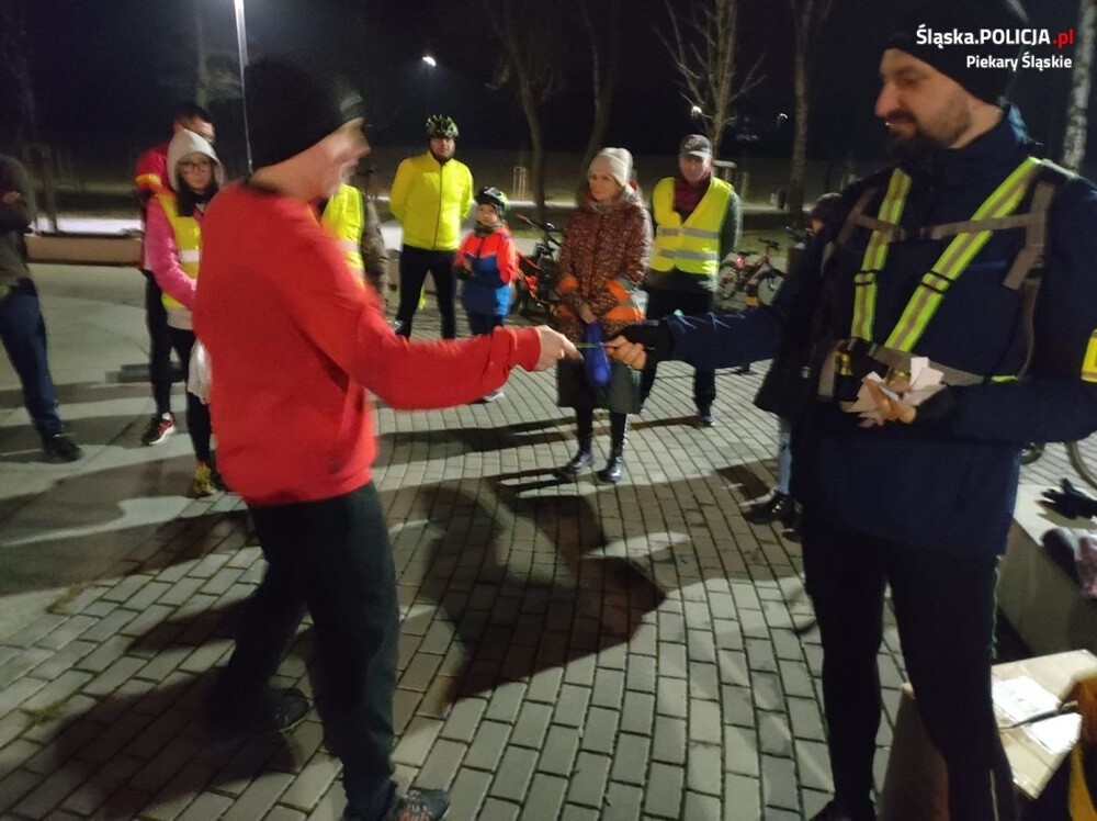 Młodszy aspirant Michał Szydłowski wręczył uczestnikom odblaskowe opaski, a także przypomniał uczestnikom przepisy, jakie musi znać każdy cyklista, poruszył kwestię bezpieczeństwa pieszych oraz zapewnił, że w tym sezonie na piekarskich drogach pojawią się mundurowi z piekarskiej drogówki w patrolach rowerowych. Serdecznie zapraszamy na kolejną "Piekarską Sportową Ustawkę" w przyszłym miesiącu.