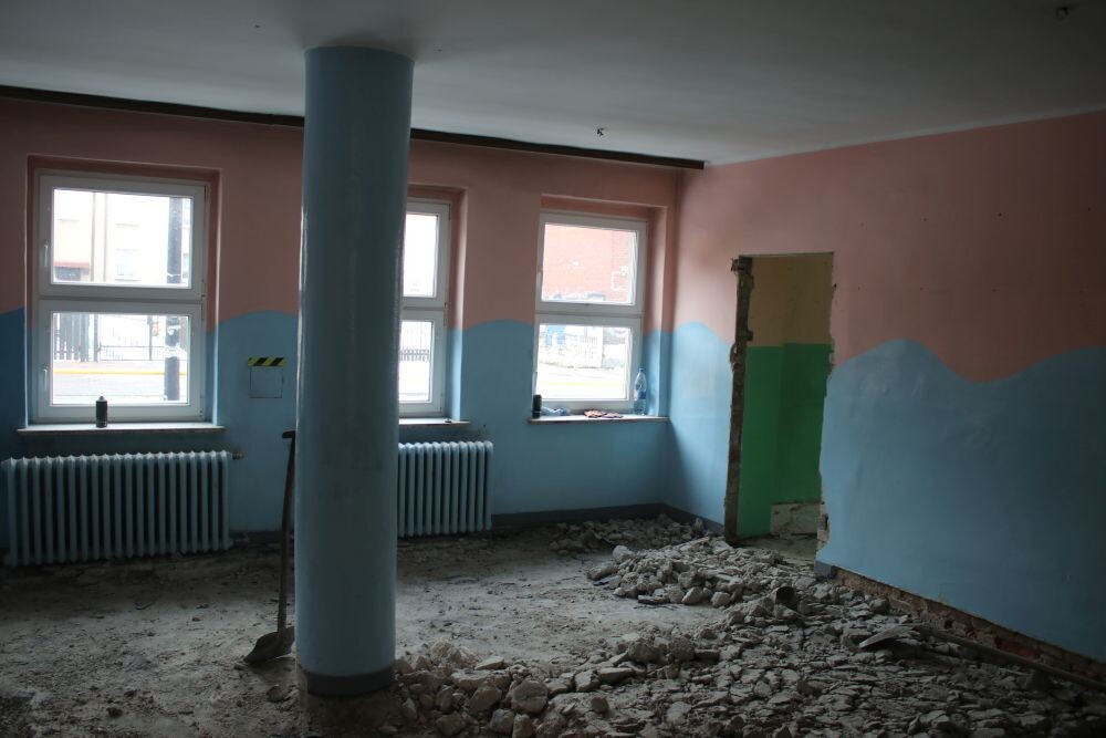 W ramach inwestycji trwają prace rozbiórkowe około 75 metrów bieżących istniejącego ogrodzenia, bram, furtek. Prowadzone są też częściowe rozbiórki stropów, ścian, dachów i schodów zewnętrznych. Zdemontowana będzie także papa pokrywająca dach. Wymieniona będzie stolarka okienna i drzwiowa. Stary, opalany węglem piec kuchenny zastąpiony zostanie nowym. Na nowocześniejsze wymienione będzie całe zaplecze kuchenne. Zmiany zajdą także w instalacji elektrycznej, która przejdzie gruntowną modernizację.