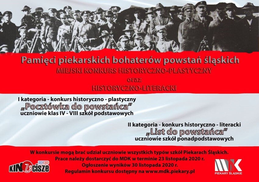 Celem konkursu jest przypomnienie dzieciom i młodzieży okresu, który zaważył na całej XX-wiecznej historii naszego regionu oraz wzmocnienie poczucia tożsamości – lokalnej i narodowej. Prace można nadsyłać do 23 listopada 2020 r. Na zwycięzców czekają nagrody. Szczegóły w regulaminie dostępnym poniżej oraz na stronie mdk.piekary.pl