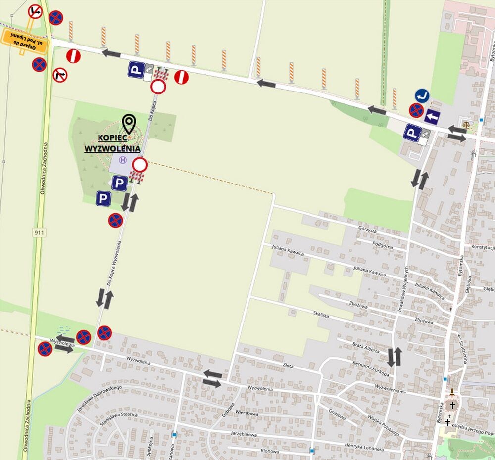 - na odcinku ul. Jana Pawła II, od skrzyżowania z ul. Inwalidów Wojennych do DW 911, wprowadzony zostanie ruch jednokierunkowy,
