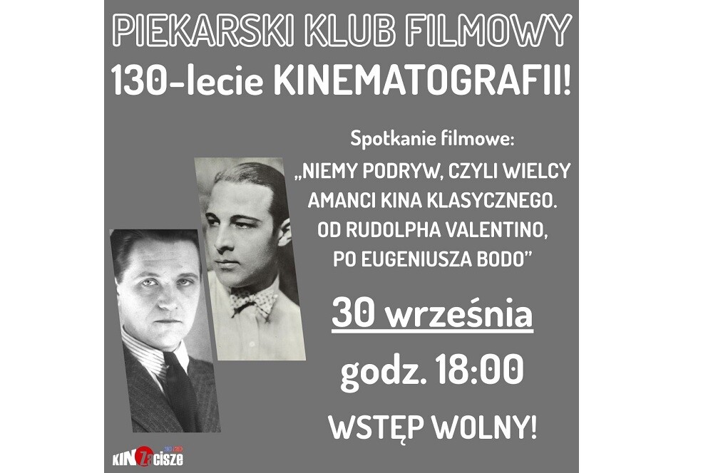 Piekarski Klub Filmowy zaprasza wszystkich miłośników kina na wyjątkowe spotkanie filmowe z okazji 130-lecia kinematografii. 30 września odbędzie się wydarzenie zatytułowane „Niemy podryw, czyli wielcy amanci kina klasycznego. Od Rudolpha Valentino po Eugeniusza Bodo”. Wstęp na wydarzenie jest wolny, a dla uczestników przygotowano wyjątkową podróż do czasów złotej ery kina niemego.