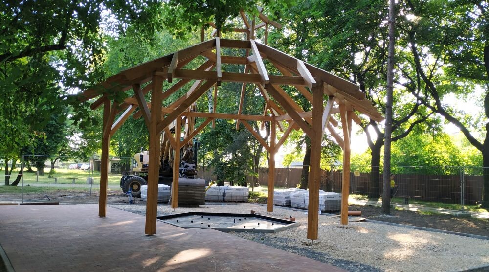 W Parku Trzech Bohaterów w Brzozowicach rozpoczęły się prace przy montażu tężni solankowej.