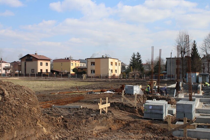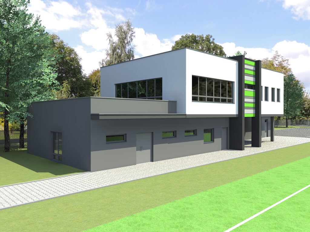 Zdemontowane zostało także pobliskie, stare boiska asfaltowe. Dotychczasowe obiekt zostały rozebrany ze względu na ich stan techniczny. Wybudowany gmach będzie dwukondygnacyjny – znajdzie się tam miejsce na szatnie i sanitariaty. Projekt obiektu obejmuje również zagospodarowanie pomieszczeń budynku na: 2 zespoły szatniowe po 40 osób, pomieszczenie sędziego, pomieszczenia biurowe oraz świetlica dla 40 osób.