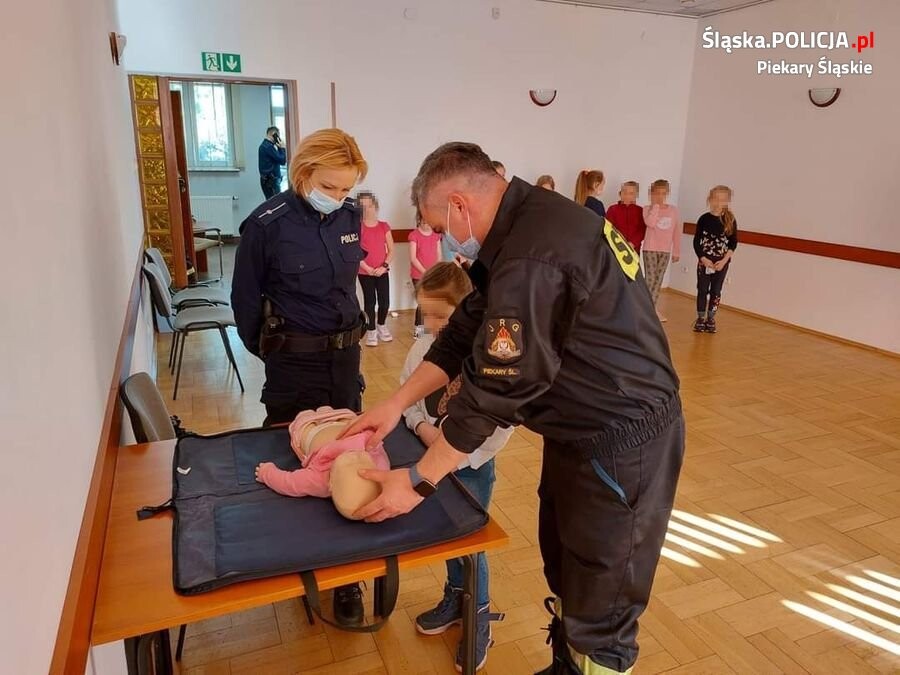 W ramach akcji "Bezpieczne ferie” dzieci brały udział w dyskusji o zasadach, których przestrzeganie pomoże im bezpiecznie bawić się podczas zimowego wypoczynku. Ważnym elementem było także omówienie zasad bezpieczeństwa podczas zabaw na ślizgawce i jazdy na sankach. Strażacy przypomnieli o zagrożeniach jakie powoduje tlenek węgla w mieszkaniach. Na koniec został przeprowadzony instruktaż oraz pokaz udzielania pierwszej pomocy.