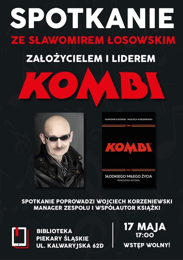 Miejska Biblioteka Publiczna im. Teodora Heneczka w Piekarach Śląskich serdecznie zaprasza na spotkanie autorskie ze Sławomirem Łosowskim – muzykiem, rysownikiem i liderem zespołu KOMBI oraz Wojciechem Korzeniewskim – wieloletnim menadżerem zespołu, które odbędzie się już w najbliższy czwartek – 17 maja.