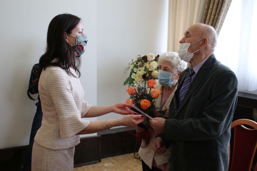 – Jestem bardzo szczęśliwa, że mimo trudnego czasu pandemii zdecydowaliście się Państwo przyjść do Urzędu Stanu Cywilnego i świętować to ważne wydarzenie w Waszym życiu. Jesteście ze sobą już długi czas, bo pięćdziesiąt, sześćdziesiąt i sześćdziesiąt pięć lat wspólnego pożycia. To naprawdę wielkie osiągnięcie. Drodzy Jubilaci, jesteście najlepszym dowodem na to, że można zbudować trwały, szczęśliwy i wierny związek małżeński. Wszystkiego dobrego na kolejne wspólne lata – powiedziała Prezydent Miasta Piekary Śląskie Sława Umińska-Duraj.