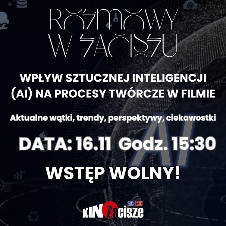 Już w najbliższą niedzielę, 16 listopada, Kino Zacisze zaprasza na kolejne spotkanie z cyklu „ROZMOWY W ZACISZU”, które poświęcone będzie wpływowi sztucznej inteligencji (AI) na procesy twórcze w filmie. Wydarzenie, które odbędzie się o godzinie 15:30, ma na celu zaprezentowanie najnowszych narzędzi i trendów w branży filmowej związanych z wykorzystaniem AI.