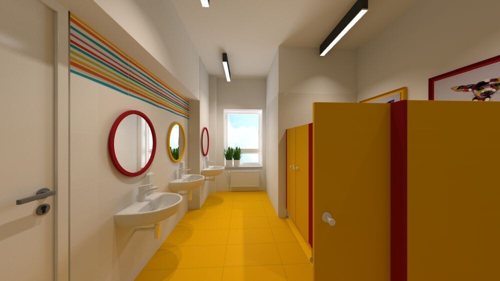 W ramach prowadzonych obecnie prac wykonany zostanie remont łazienek dla dzieci i personelu (razem 8 łazienek) wraz z wymianą armatury i przyborów łazienkowych. Wymianie podlega też instalacja wodno-kanalizacyjna. Częściowo modernizowana jest również stolarka drzwiowa wewnętrzna.