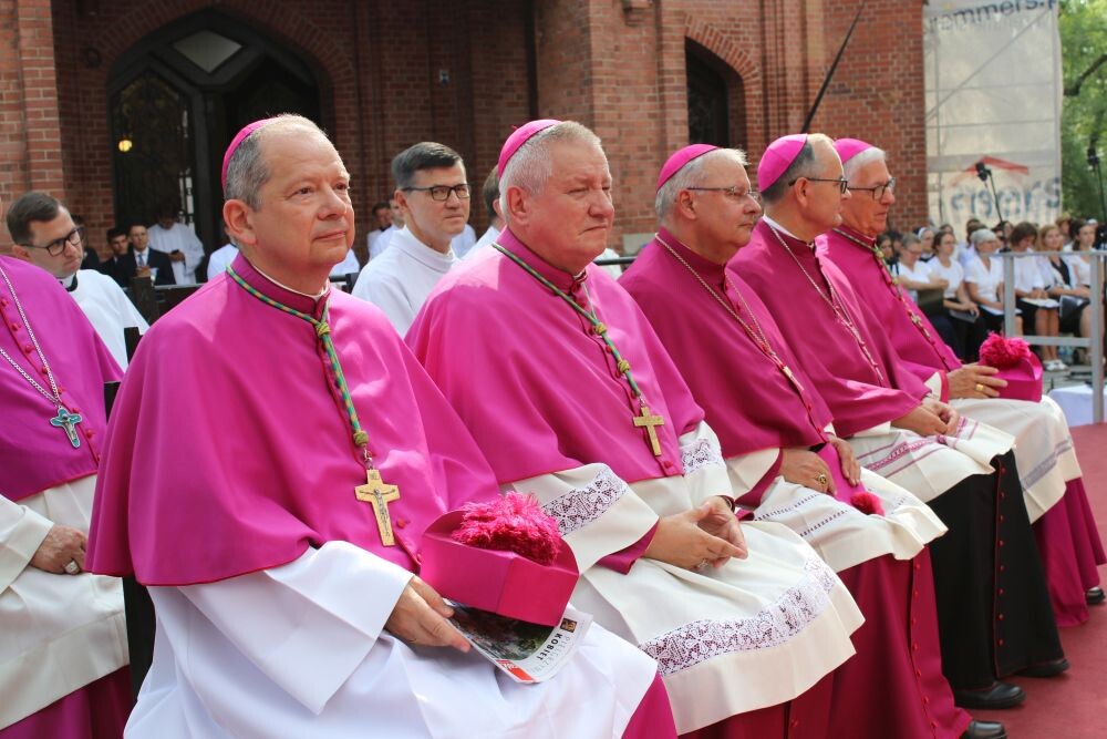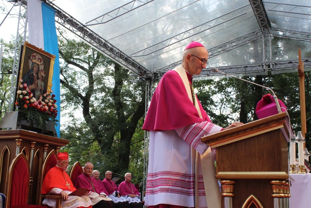 – Wszyscy jesteśmy dziś pątniczkami i pątnikami. Razem z Maryją, Matką Kościoła oraz Matką Sprawiedliwości i Miłości Społecznej dziękujemy za Kościół, naszą Matkę, a jednocześnie prosimy Maryję, by modliła się za nami i z nami, byśmy w Kościele byli bardziej, głębiej i lepiej. Miejsce i rola kobiety w Kościele to jeden z najważniejszych tematów, podejmowanych na trwającym obecnie synodzie. Niestety, nierzadko kobiety skarżą się na rozmaite przejawy dyskryminacji, które mają miejsce także w nowoczesnych społeczeństwach Zachodu. Przeciwko temu musi być w Kościele sprzeciw, a sam Kościół musi być przykładem zupełnie innej społeczności, zbudowanej na całkiem innych zasadach, wartościach i relacjach. Zerwałyście się bladym świtem i przyszłyście tu, w pielgrzymkowych grupach, lub indywidualnie, dając w ten sposób świadectwo o waszej wierze. To jest obraz Kościoła. Nie ma on stać w miejscu, nie ma być ukryty jak lampa schowana pod korcem, lecz ma jaśnieć innym – powiedział abp. Adrian Galbas.