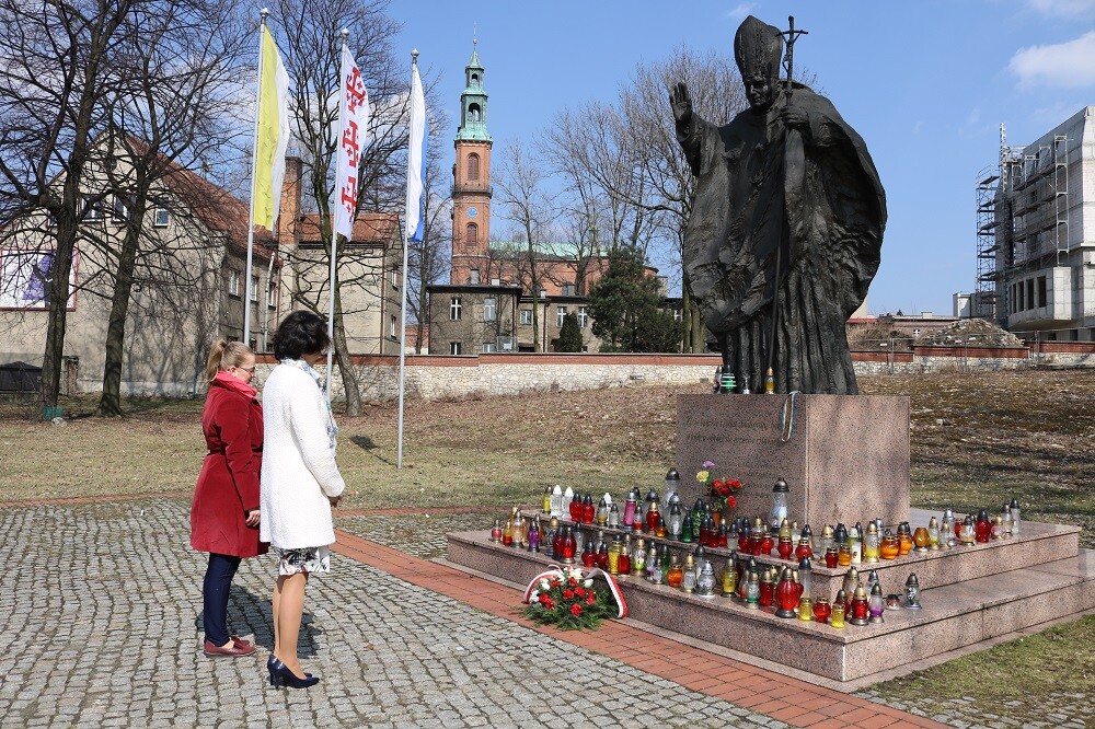 W tym roku rocznica śmierci Papieża Polaka wyjątkowo pokrywa się z drugim dniem Świąt Wielkanocnych. W piątek poprzedzający rocznicę Prezydent Sława Umińska-Duraj wraz z Radną Rady Miasta Natalią Ciupińską-Szoską w imieniu władz samorządowych Piekar Śląskich złożyły kwiaty pod pomnikiem znajdującym się przy bramie głównej Wzgórza Kalwaryjskiego.