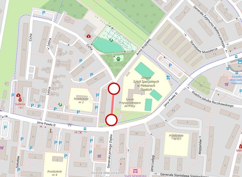 Na czas realizacji zadania, który szacowany jest na około tydzień, wskazany fragment ul. Armii Krajowej zostanie całkowicie wyłączony z ruchu drogowego.