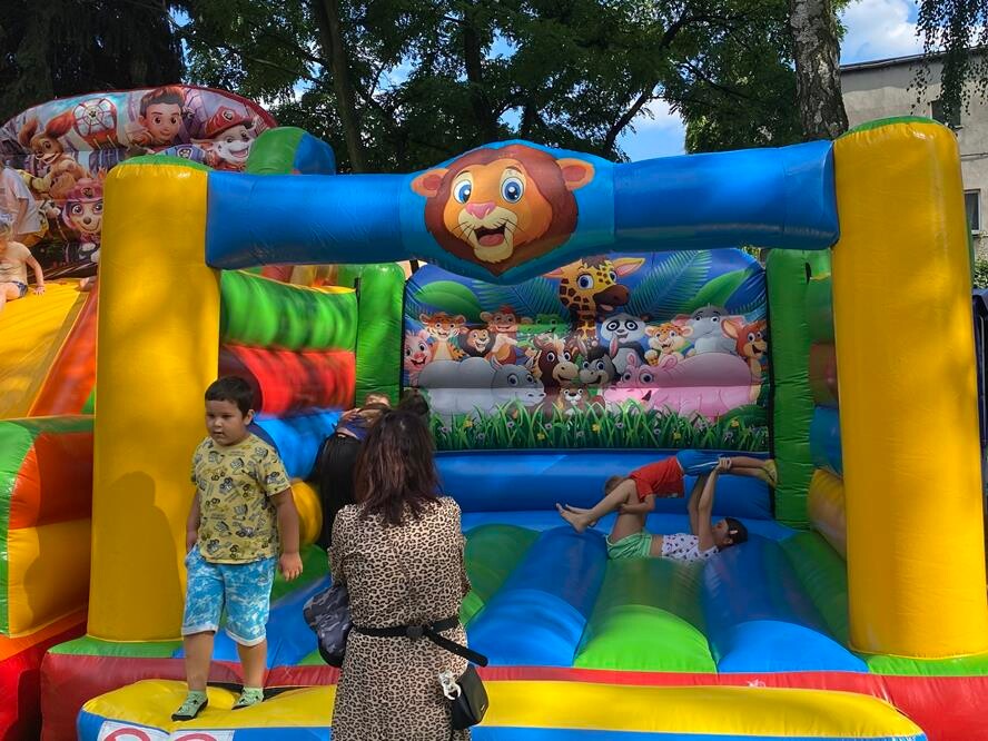 Dzieci mogły korzystać z rozmaitych atrakcji, takich jak malowanie twarzy, brokatowe tatuaże, popcorn, wata cukrowa czy zakręcone frytki – wszystko to wywołało mnóstwo uśmiechów i entuzjazmu. Wspaniała atmosfera festynu sprzyjała wspólnej zabawie i radosnym chwilom.