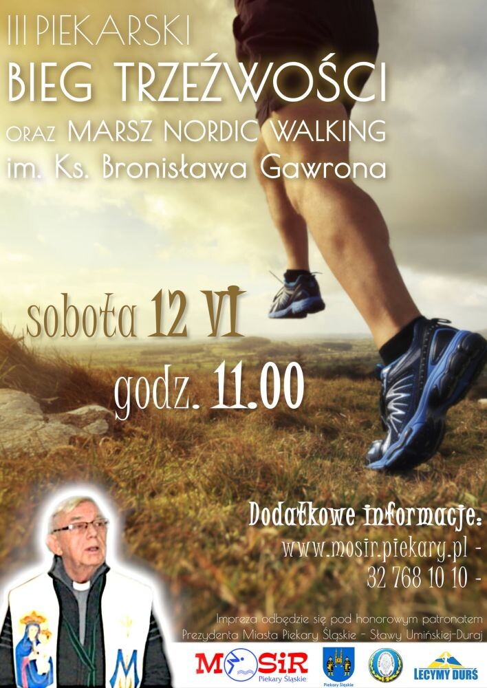 W sobotę 12 czerwca odbędzie się III Piekarski Bieg Trzeźwości oraz Marsz Nordic Walking im. ks. Bronisława Gawrona.
