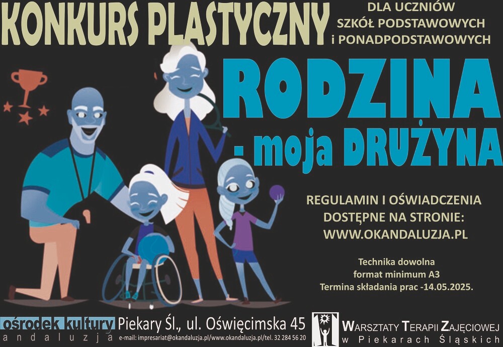 Z okazji zbliżających się obchodów Dnia Walki z Dyskryminacją Osób z Niepełnosprawnością (5 maja) oraz Międzynarodowego Dnia Rodzin (15 maja), Ośrodek Kultury „Andaluzja” oraz Warsztaty Terapii Zajęciowej (WTZ) w Piekarach Śląskich organizują wyjątkowy Konkurs Plastyczny. Konkurs ma na celu pogłębienie świadomości społecznej na temat problemów, z jakimi borykają się rodziny oraz osoby niepełnosprawne.