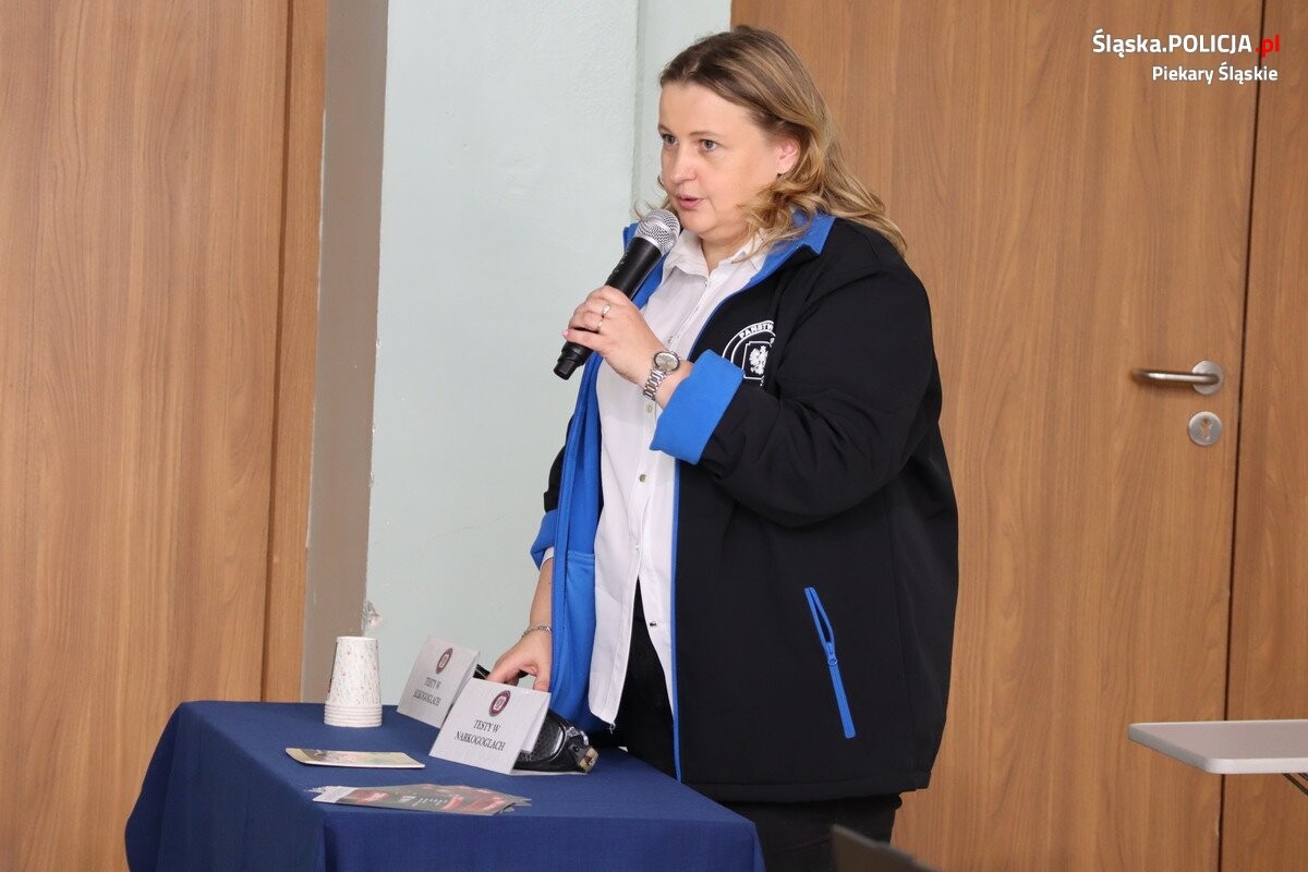 O sygnałach, które powinny nas zaniepokoić, mówiła Pani Edyta Laskowska-Pyzik, psycholog, specjalista psychoterapii uzależnień. Natomiast o rodzajach środków odurzających i skutkach ich zażywania mówiła Pani Joanna Dyląg-Osemka, przedstawicielka Stacji Sanitarno – Epidemiologicznej w Bytomiu.