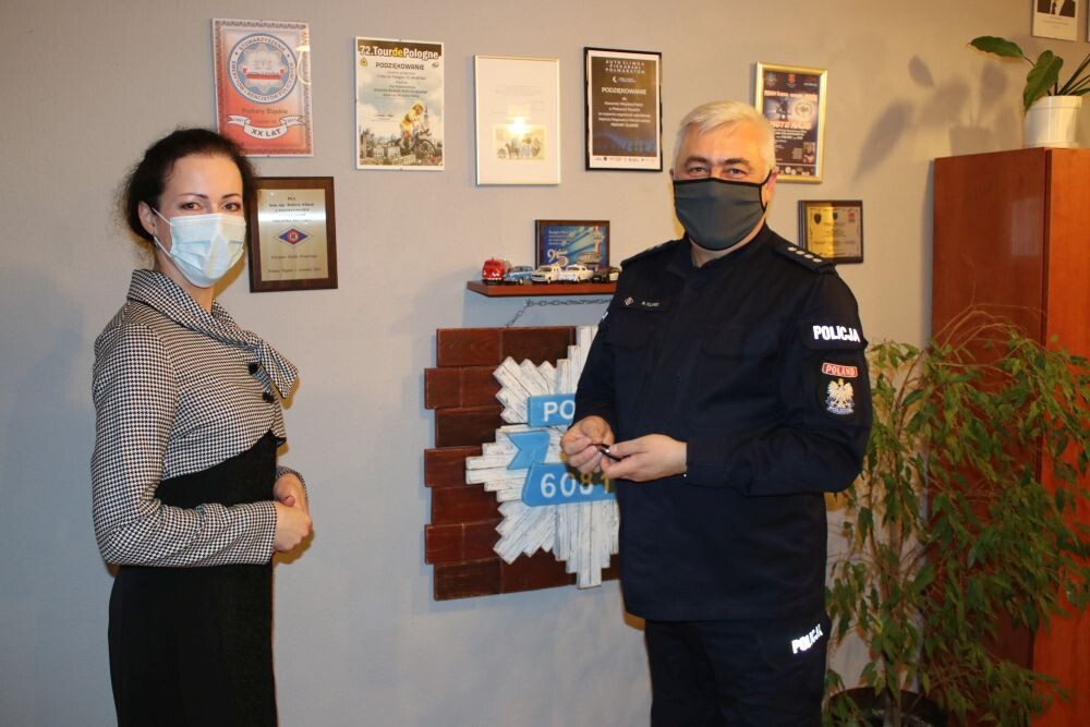 Sława Umińska-Duraj, Prezydent Miasta Piekary Śląskie przekazała na ręce nadkom. Roberta Klimka – Komendanta Miejskiego Policji w Piekarach Śląskich kluczyki do nowego samochodu patrolowego, którego zakup współfinansowany był przez Miasto Piekary Śląskie.