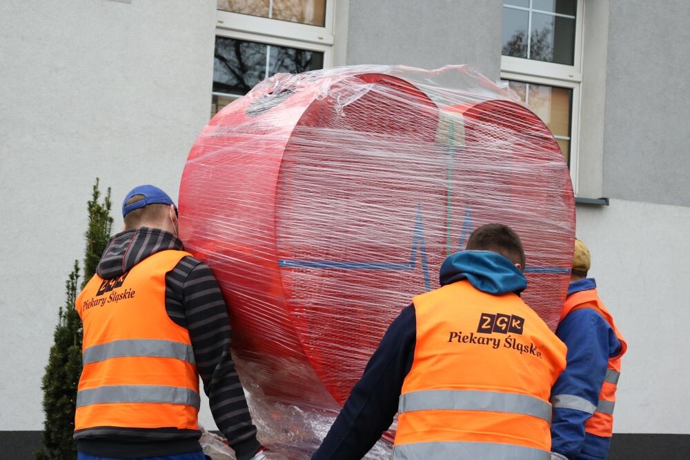 Metalowy kosz w kształcie serca został postawiony, na wniosek mieszkańców i radnych, w pobliżu Miejskiego Domu Kultury przy ulicy Bytomskiej 73.