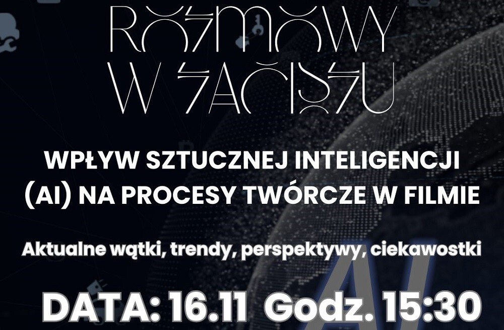 Już w najbliższą niedzielę, 16 listopada, Kino Zacisze zaprasza na kolejne spotkanie z cyklu „ROZMOWY W ZACISZU”, które poświęcone będzie wpływowi sztucznej inteligencji (AI) na procesy twórcze w filmie. Wydarzenie, które odbędzie się o godzinie 15:30, ma na celu zaprezentowanie najnowszych narzędzi i trendów w branży filmowej związanych z wykorzystaniem AI.