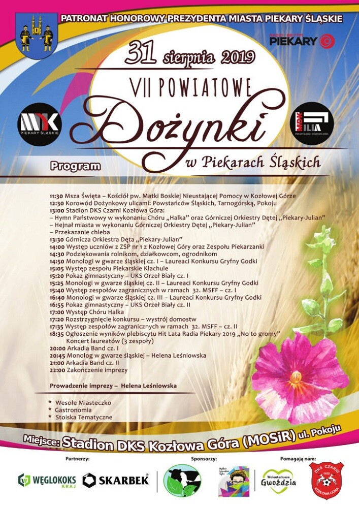 Święto plonów to dla wszystkich rolników czas wyjątkowy. Po całorocznej trudnej i ciężkiej pracy przychodzi moment podsumowania, podziękowania za zbiory, dzielenia się radością i wspólnej zabawy. Za tegoroczne żniwa rolnicy z Piekar Śląskich podziękują 31 sierpnia podczas VII Dożynek Powiatowych, które w tym roku odbędą się na terenie Kozłowej Góry.