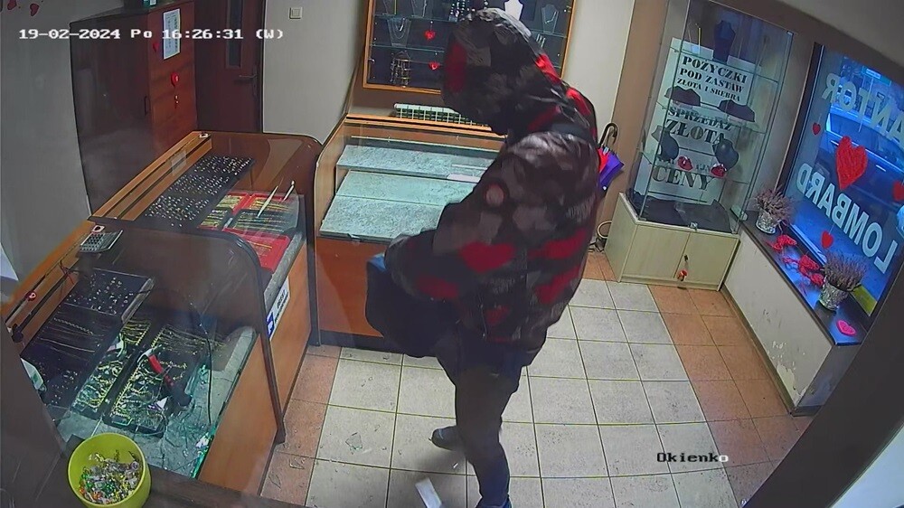 W poniedziałek ok. 16.30 w kantorze na ul. Wyszyńskiego w Piekarach śląskich doszło do zuchwałej kradzieży. Napastnik rozbił gablotę i ukradł biżuterię o wartości blisko 50 tys. zł.